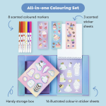 Over 200 adorable stickers with sweetly scented markers to color them in plus a few full color scented stickers for maximum impact. Complete in our sturdy, magnetic-sealed case perfect for kids on the go.