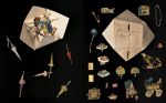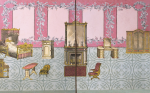 In 1884, a remarkable twelve-year-old girl made a paper doll’s house. While these were fashionable enough at the time, they were usually drawn and painted. Miss Sarah Elizabeth Birdsall Otis, however, chose the medium of collage: scraps of wallpaper, gilded trim, colored-in cut-outs of furniture, and engravings from mail-order catalogs, all glued down unselfconsciously in book form with no regard for scale or realism. What makes the album so special is its creator’s stunning, innate artistry. She also populated her house with paper dolls, their delightful cut-out costumes preserved in envelopes marked with the names of the characters and their accessories stored in paper squares marked “Hats and Bonnets” or “Umbrellas and Parasols.”
