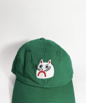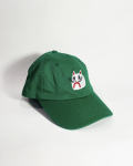 Green Cat embroidered kids dad hat with an adjustable strap in back. 6 1/2" - 7 1/4" (Age range: 3 years to small adult) 100% cotton, bio-washed chino twill