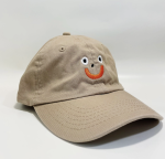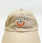 Happy embroidered kids dad hat with an adjustable strap in back. 6 1/2" - 7 1/4" (Age range: 3 years to small adult) 100% cotton, bio-washed chino twill