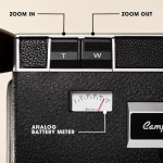 A retro touch that actually works: keep an eye on battery and storage with dual analog dials.