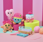 Knit adorable characters using the Nimble Knitter adjustable loom! With 4 colors of yarn, tons of face stickers, pipe cleaners, stuffing and more, it's the perfect device to make fun knit pals! Make 4 little guys or one larger character. The patented loom with bamboo base has a moveable puzzle piece which lets you knit different tube widths. The loom works with #4 yarn weight, so you can keep using this heirloom-quality, handy device!