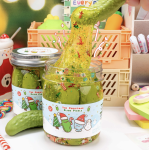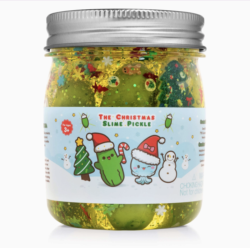 What's quirkier than the Christmas pickle tradition? Well, a Christmas Pickle Slime of course! This festive bright green goo will be the hit of any holiday gathering with its salty, sour aroma and all the sparkly add ins. Each Christmas Pickle comes packed full of holiday themed glitter, 3 life sized pickles and hidden inside each jar is a Christmas themed charm!