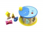 A box of shapes full of surprises: Shapes to fi t in spaces, sound cubes, a small drum and a kaleidoscope. Enter Suzy’s chic Kawai world and fall in love with this sweet round shape-sorter that will help stimulate your baby’s curiosity. A day side, a night side, a sun drum and a star stick to pat the drum! Hey! Oooooh! Surprise...The shapes make fun little noises. The sweetest one is certainly the water droplet, with its lovely kaleidoscope!