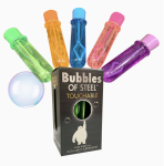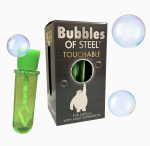 These bubbles are heroic! How's that? Well, these bubbles can be touched and they won't pop. These are tough bubs. You can make bubbly stacks or even bubble sculptures. Sometimes you find a little bubble weeks later, just sitting there being... not your basic bubble. Physics made adorable! Great for restocking your store for summer, outdoor play, sensory toys and birthday gifts. A bestselling stocking stuffer.